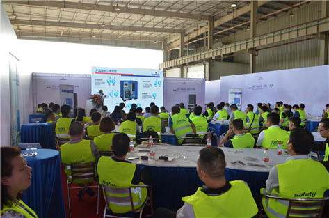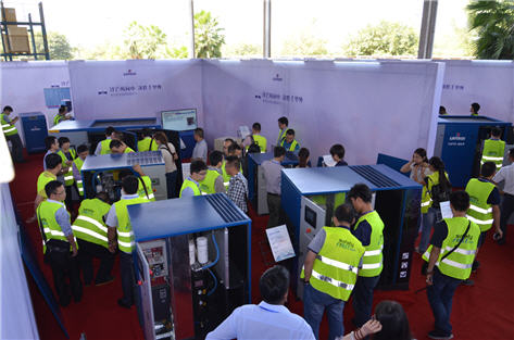 新一代LU系列螺桿式壓縮機(jī)全面提高了能源使用效率,即使在惡劣的工作環(huán)境中也能可靠運(yùn)行。新款干燥機(jī)更是在環(huán)保、適應(yīng)惡劣工況環(huán)境的同時,滿足客戶對潔凈空氣的需求。我們還有相對應(yīng)的熱能回收,捷能管道等售后服務(wù)產(chǎn)品配備,全套壓縮空氣解決方案幫助客戶降低成本,提高效率。在工作人員的帶領(lǐng)下,與會代理商前往展廳參觀了新產(chǎn)品。